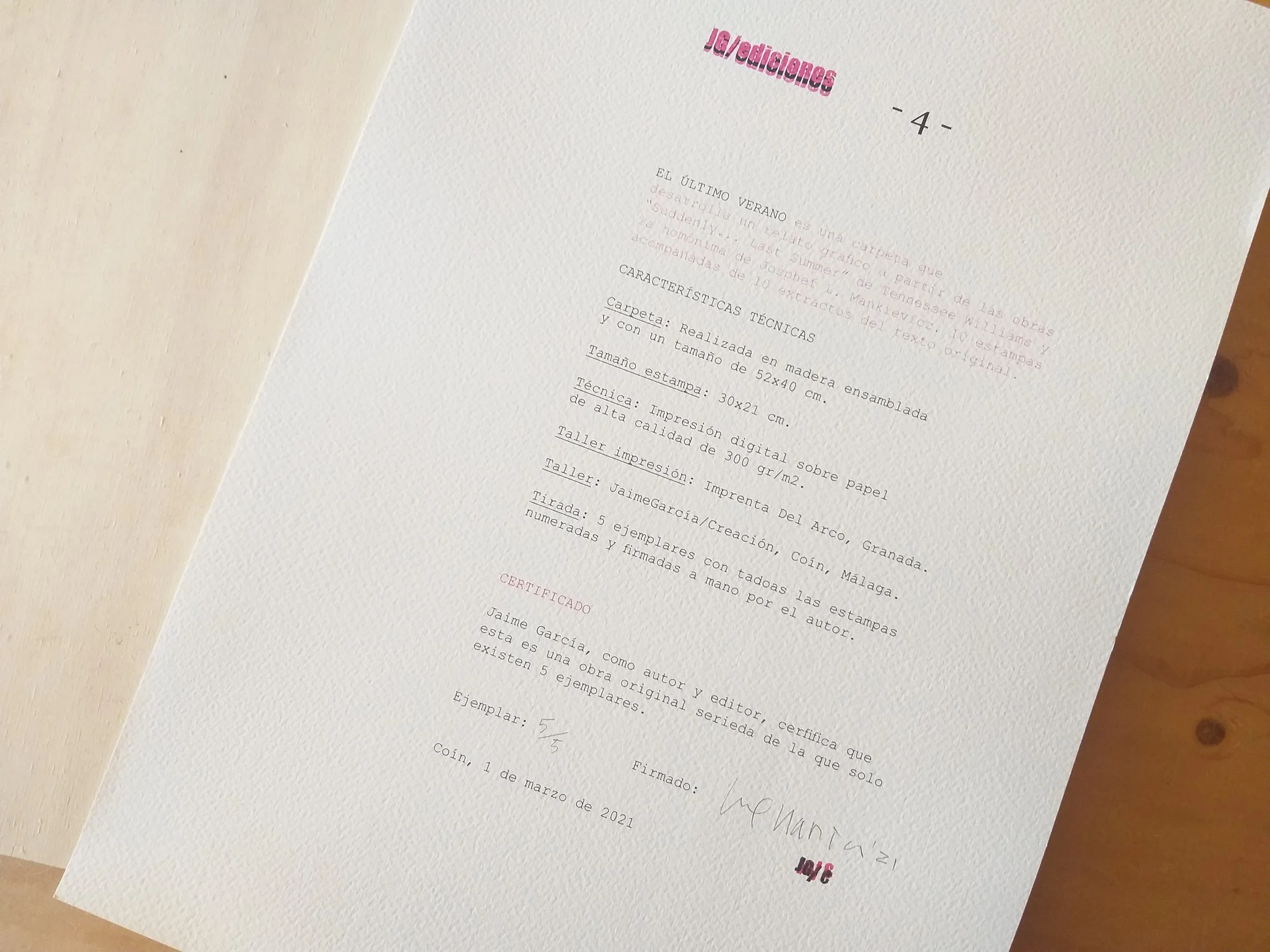 5 ejemplares firmados y numerados (disponible)